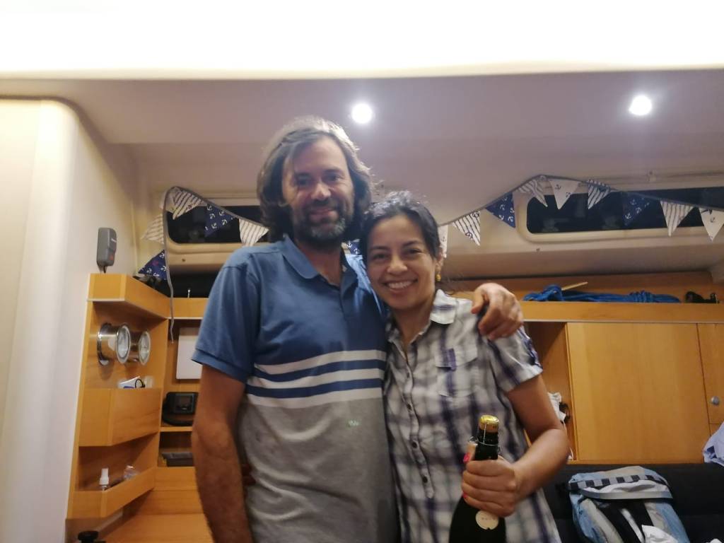 En la noche compartimos una botella de Cava (recordar que este velero viene de Barcelona).