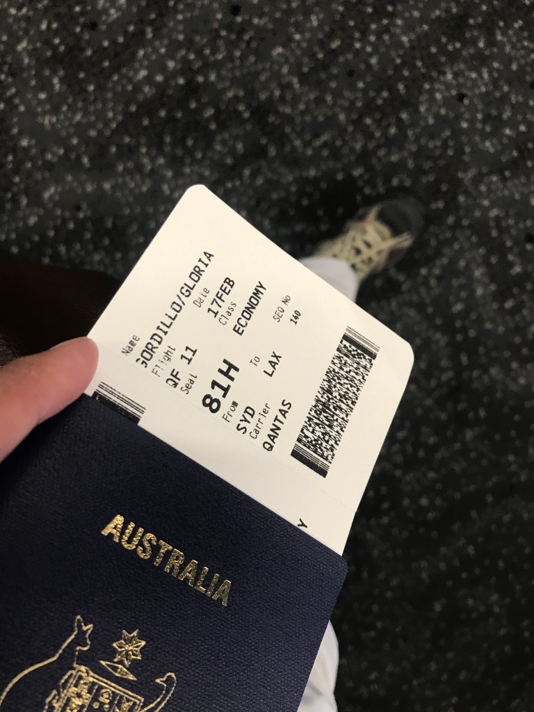 Es la primera vez que salgo de Australia como ciudadana. Sin embargo, no me escapé al chequeo “extra” y por azar de seguridad. En mi pasaporte está mi lugar de nacimiento, y creo que ese pequeño detalle me da derecho a ganar siempre aleatoriamente una encuesta extra. Pero esta vez fue diferente, en todo; el trato y las preguntas. Cuando empecé a responder las preguntas, explicando que me iba de viaje por un año, la persona de seguridad se interesó en mi proyecto y empezó a hacer más preguntas, mas por interés en mi aventura que por chequeo de seguridad. Al final se despidió y me deseó mucha suerte. Ya en el avión que se retrasó un poco más de una hora en la salida, todas las emociones empezaron a cambiar. Tranquilidad porque después de años de preparación lo logré, ya estoy en camino, es real. Y por otro lado algo de incertidumbre y curiosidad.