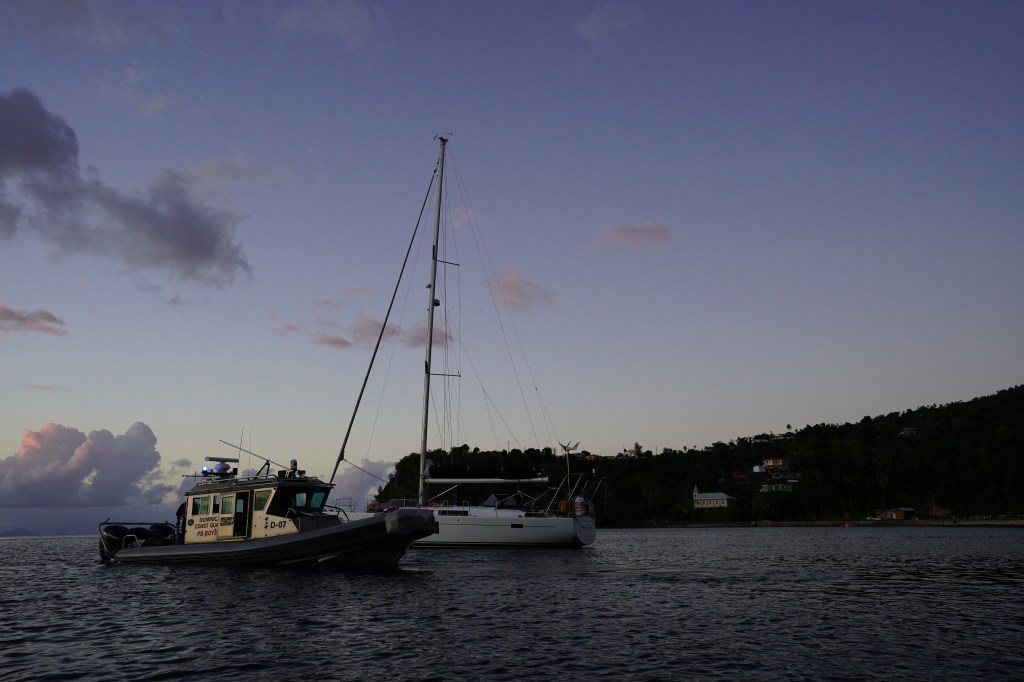 We went back to talk to them, couple of officers wearing masks and gloves. After some questions they asked us to go back to Portsmouth anchorage, the island is closing all borders and no cruising will be allowed. We ask for permission to stay overnight and go in the morning as it was already getting dark and might not be safe to arrived in the dark to Portsmouth. They were very understanding and told us going in the morning would be ok and that they will be doing more checks the following day.
