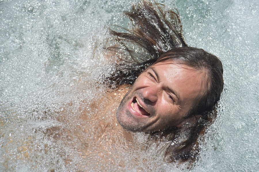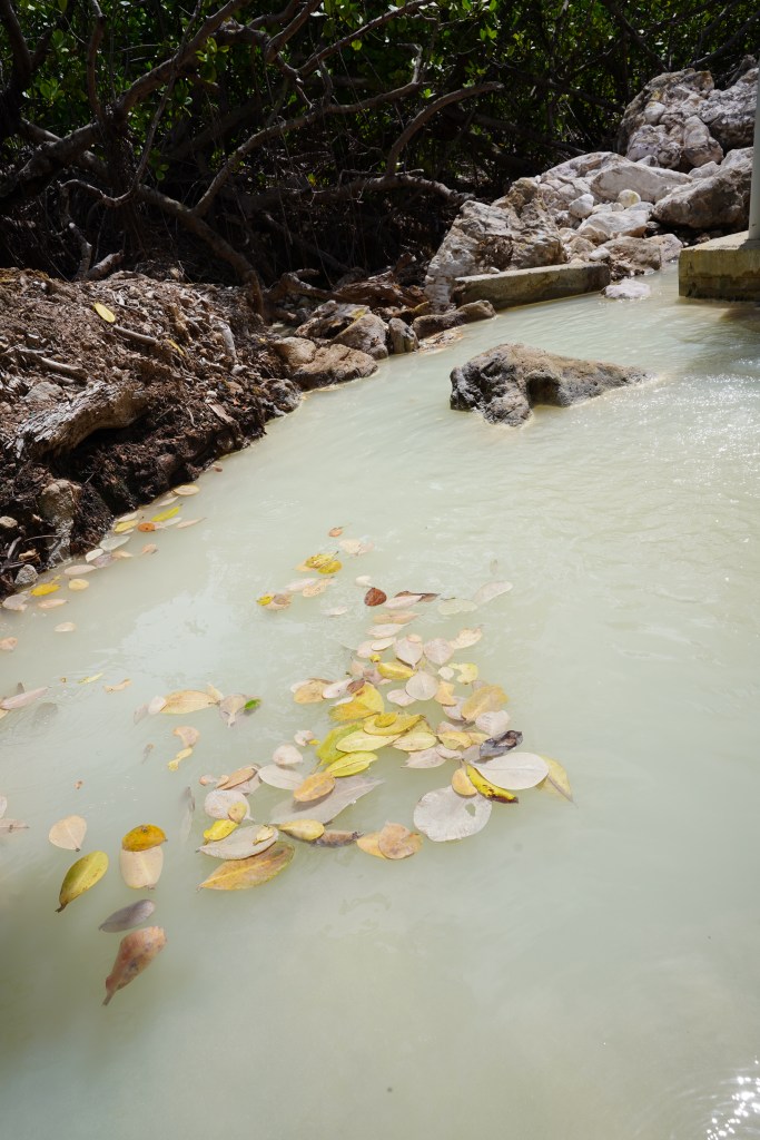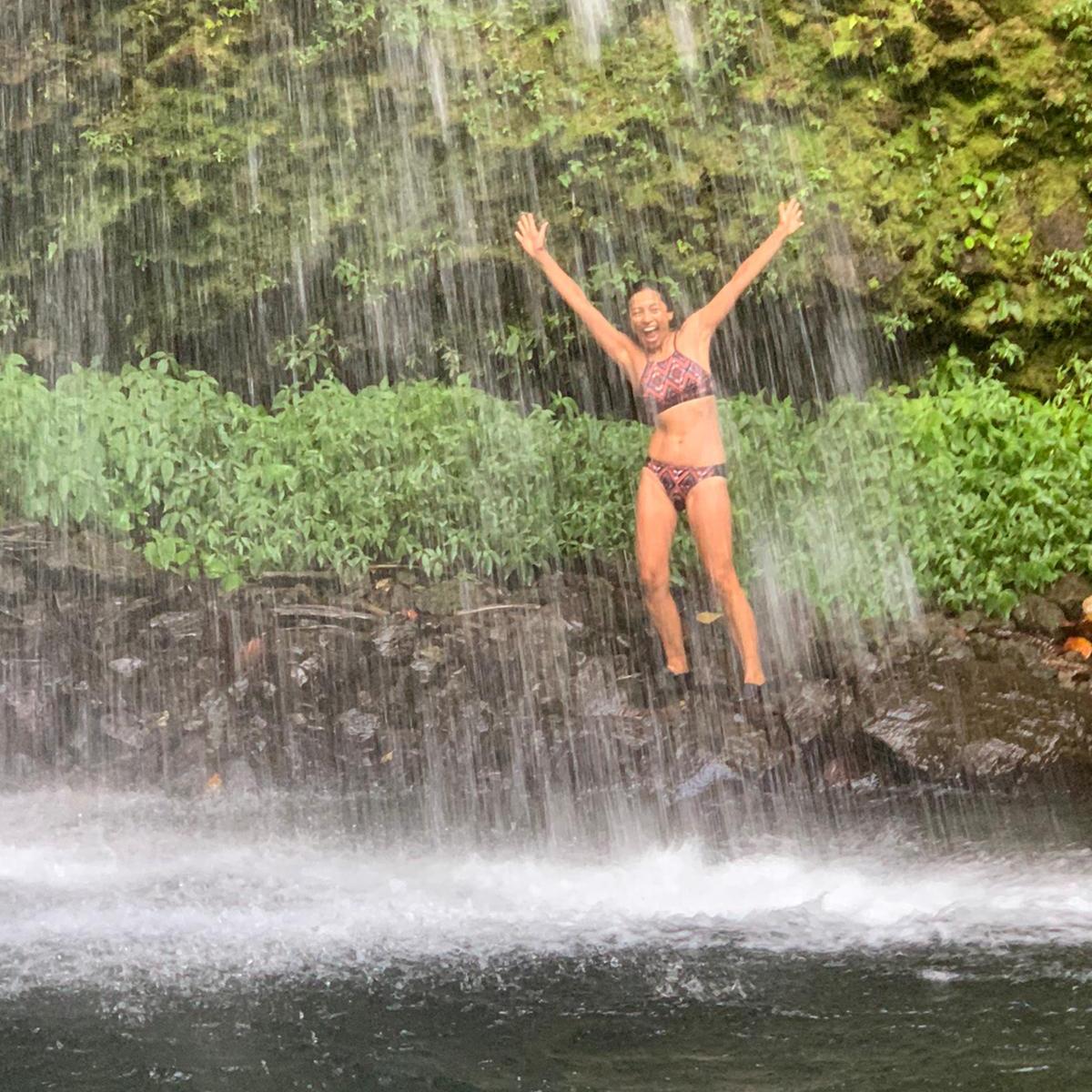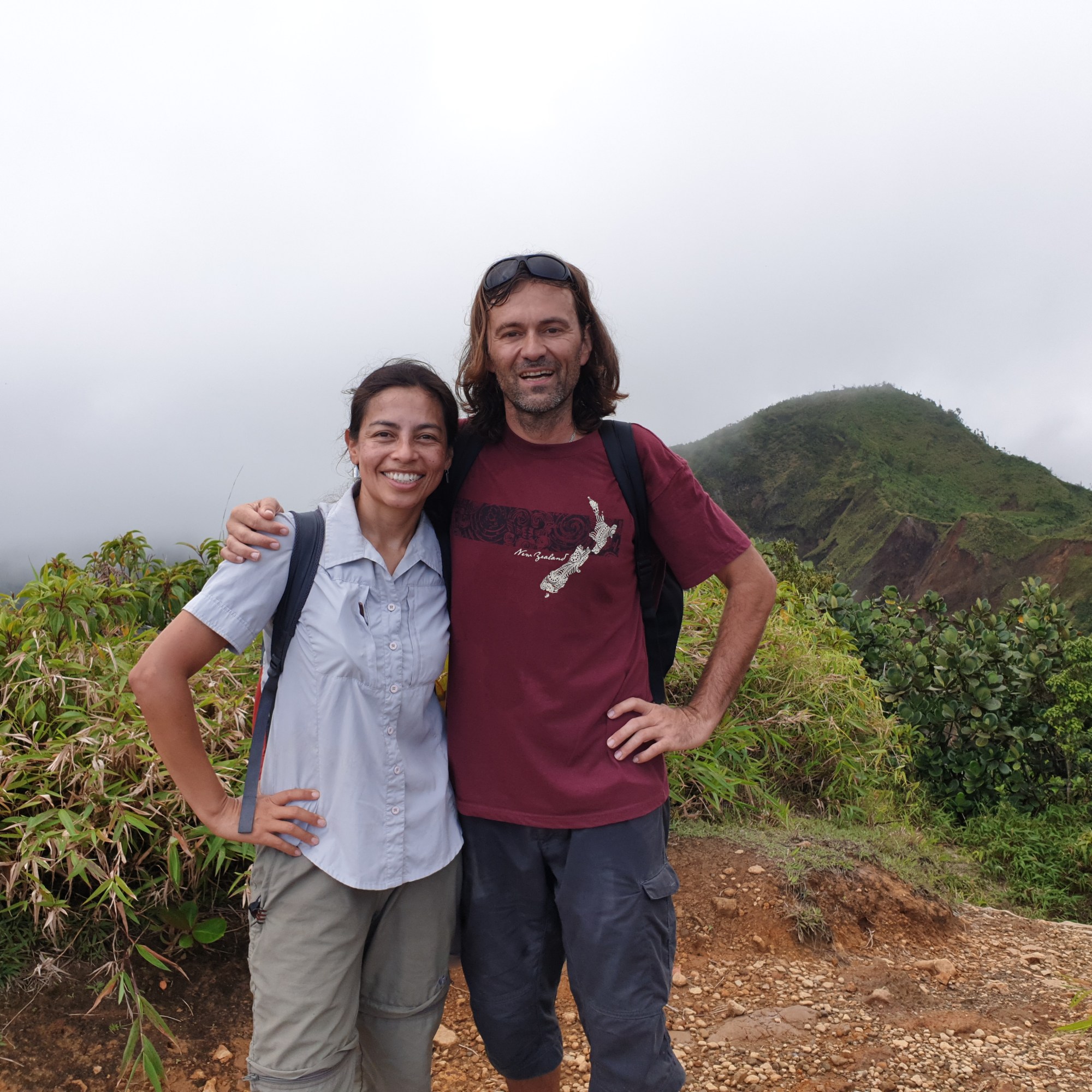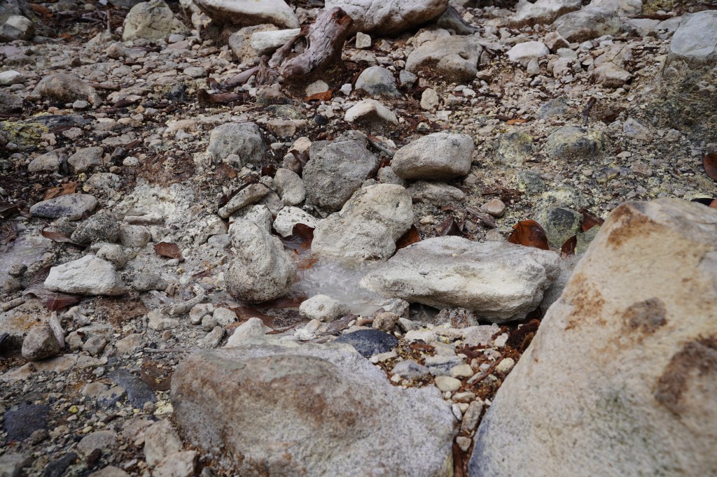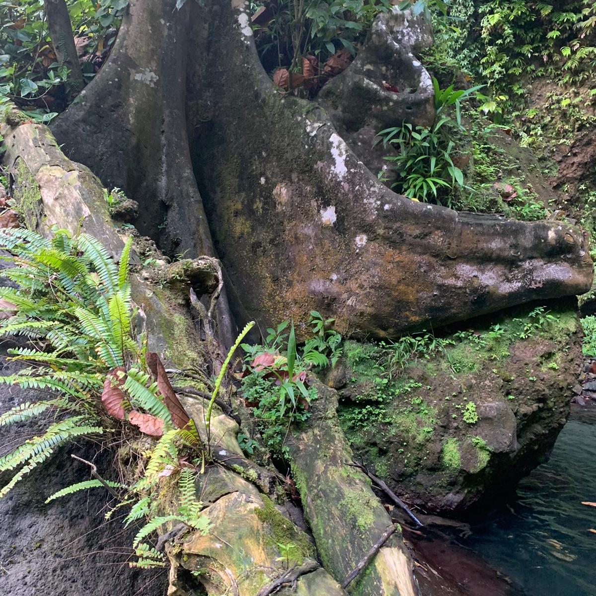 on, he held the rope and help me, it was excellent to have that extra support. He is very used to the rope and Viviane takes it all the time. We did an amazing, very hard hike thru a very rough terrain. Parts of the trail are easy to follow but some of them have ropes, missing steps, river crossings and so much more. For four hours, we kept going up and down under the sun, bit of rain and lots of mud. The views from the ridge are fantastic. The trail has various environments dense vegetation, a desolation valley and the streams that need to be cross several times. 30 minutes to the end you can start seeing places with the vapour coming up. Finally, at the top a cauldron of bubbling greyish-blue water enveloped in a cloud of vapour. Great walking team, we made it!!! Had some lunch and another four hours of hike. We finished with a refreshing cooldown at the entrance of Titou Gorge.