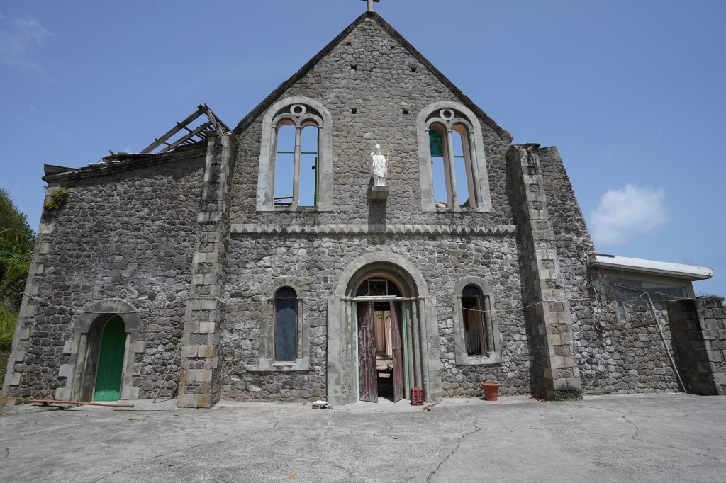 We wanted to visit Sari Sari falls which is in the southeast of the island, so we drove through small and smaller roads only to arrive to a broken bridge, that was destroyed by a Hurricane and has not been restored. So, we never made it to those falls. Going around to reach them by the other side seemed to take too long. So instead we decided to go back and maybe have a couple of stops. We passed by small village, Berekua, where we discovered the Saint Patrick Catholic Church. Also destroyed by the hurricane and never recovered. For some reason, apparently it was easier to build a new church, just one floor with no architectural features than to recover the old church. Such a shamed because the original church still looks impressive although it is missing the roof.