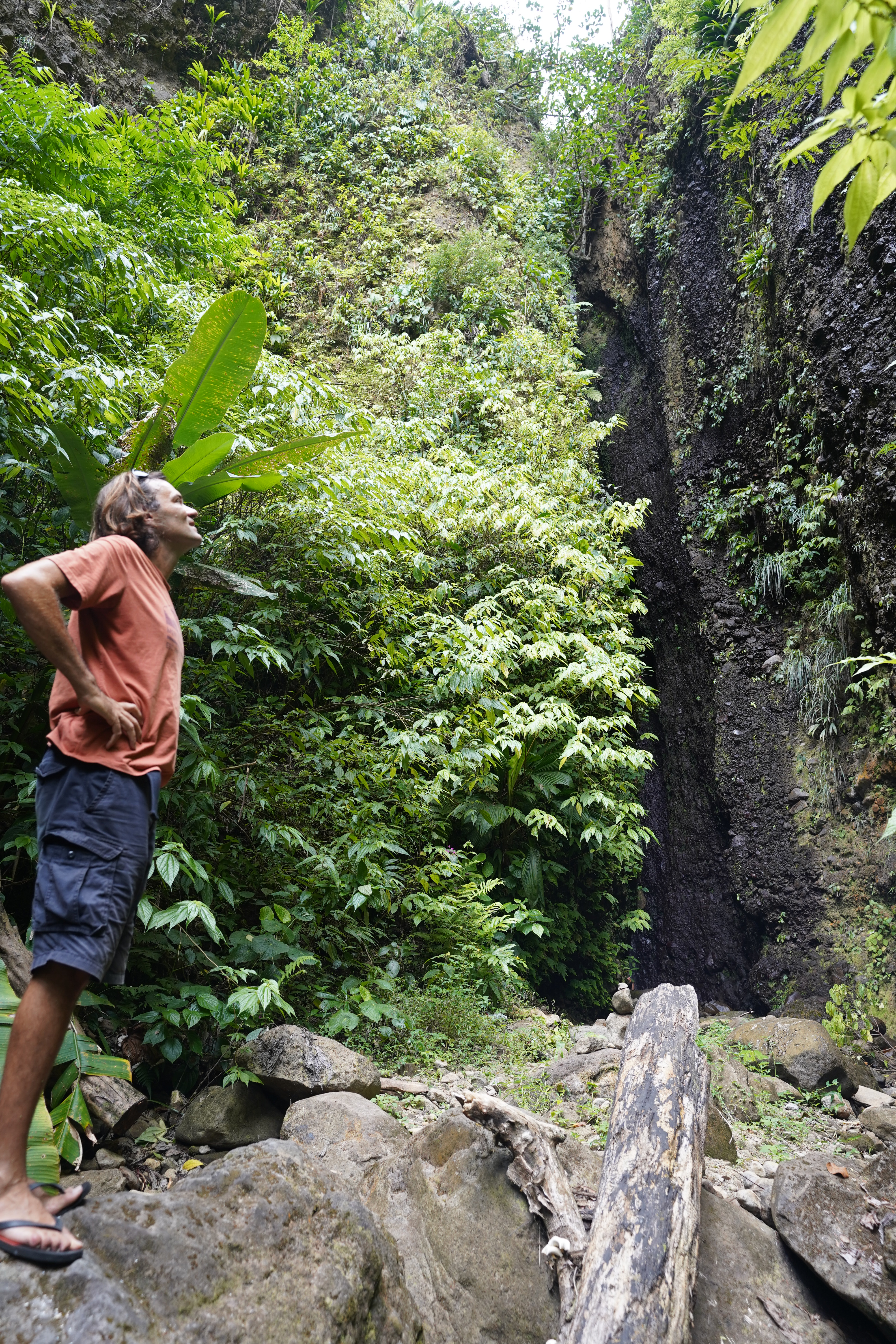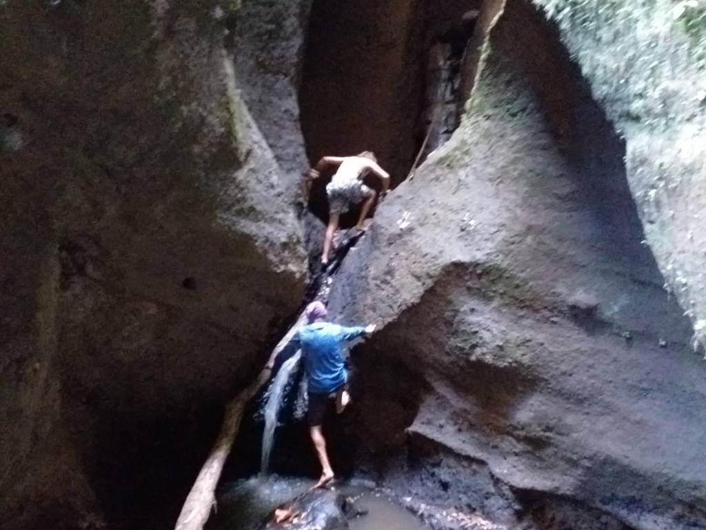 A bit disappointed when we got there because there was no pool. We could not take a swim. Cedric and Thierry climb the rope to see the other part of the waterfall