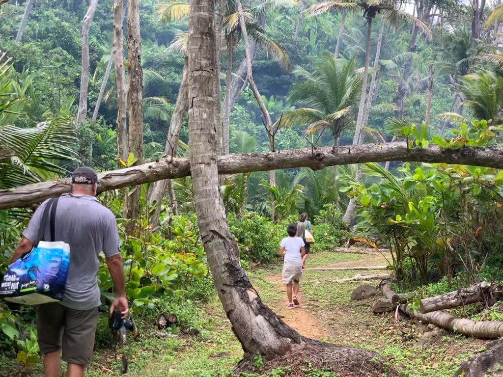 Another day we were told of a waterfall close by to the anchorage, so we pack a small snack and went early morning after the radio at 8am. The trail was really nice with some abundant vegetation and a bit of shade which is always welcome.