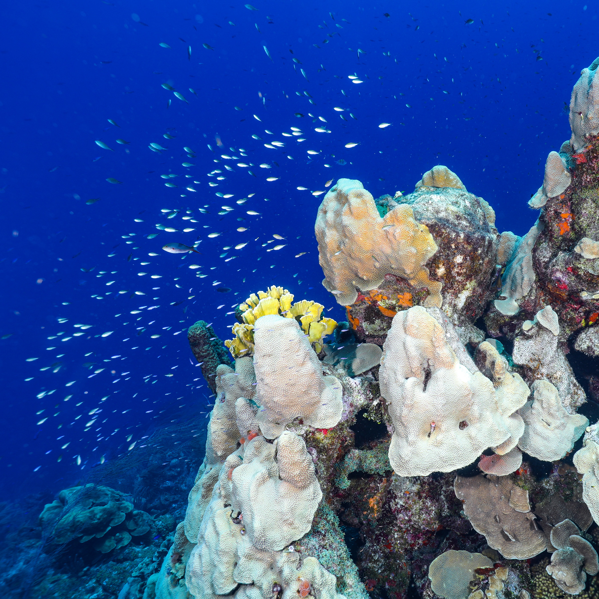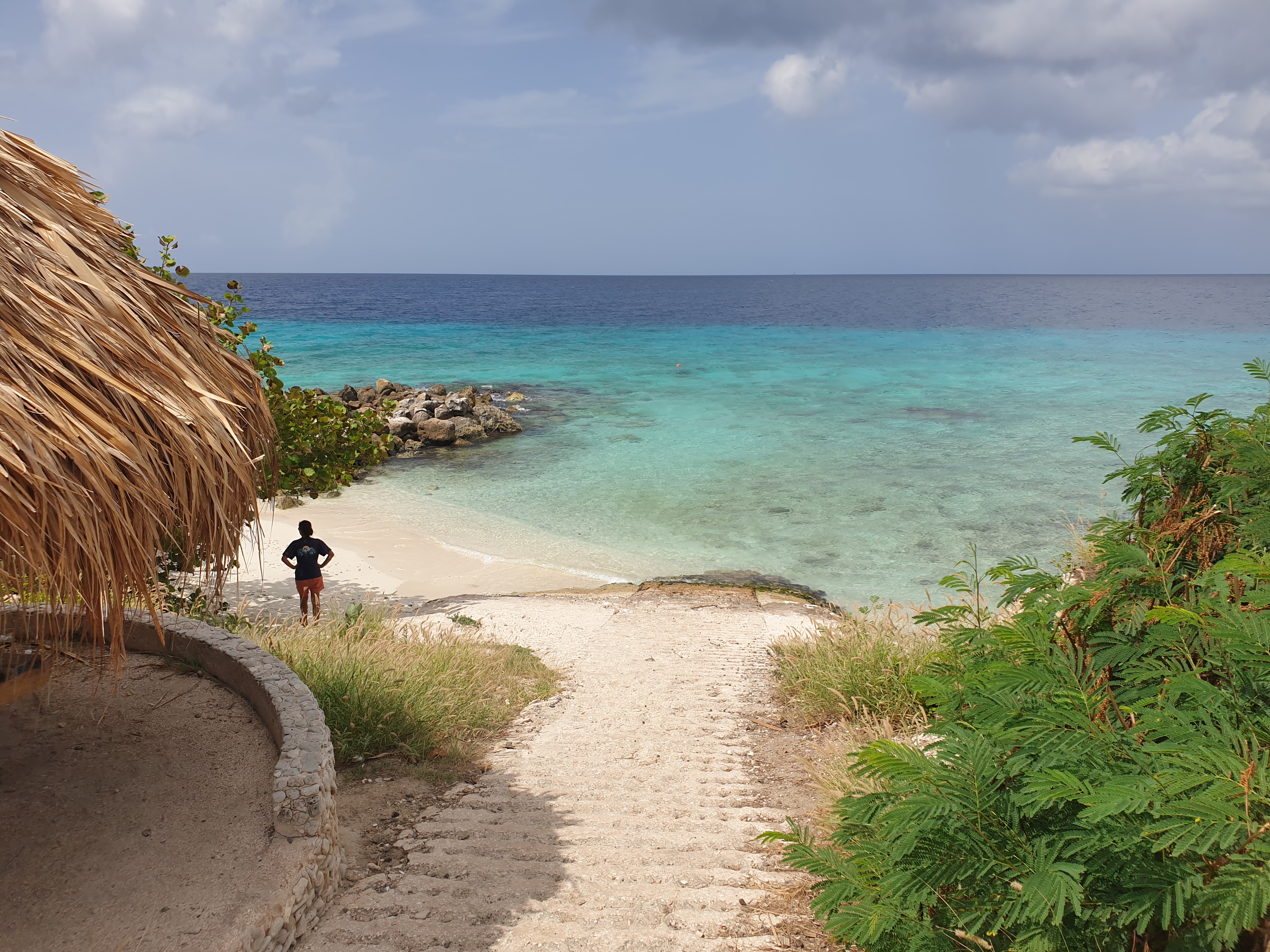 The variety of coral, fish and marine life in general is huge in Curacao. The water is 29 deg C and visibility is great. Most of the dives have easy access from the beach and then a short or longer swim before going down to a big nice wall of pristine coral. In the pictures above you can see the difference in colours of the sea, that is when the depth changes.
