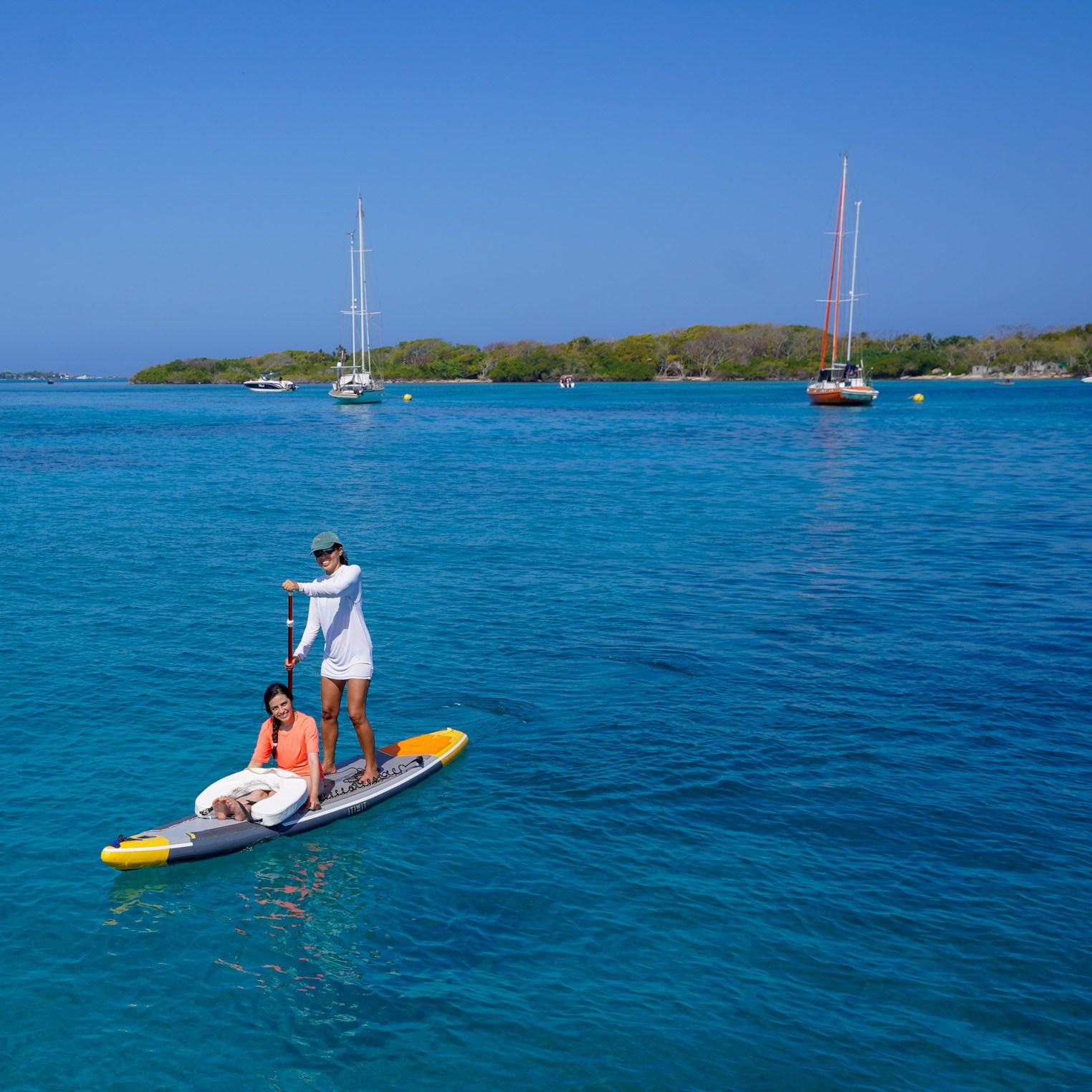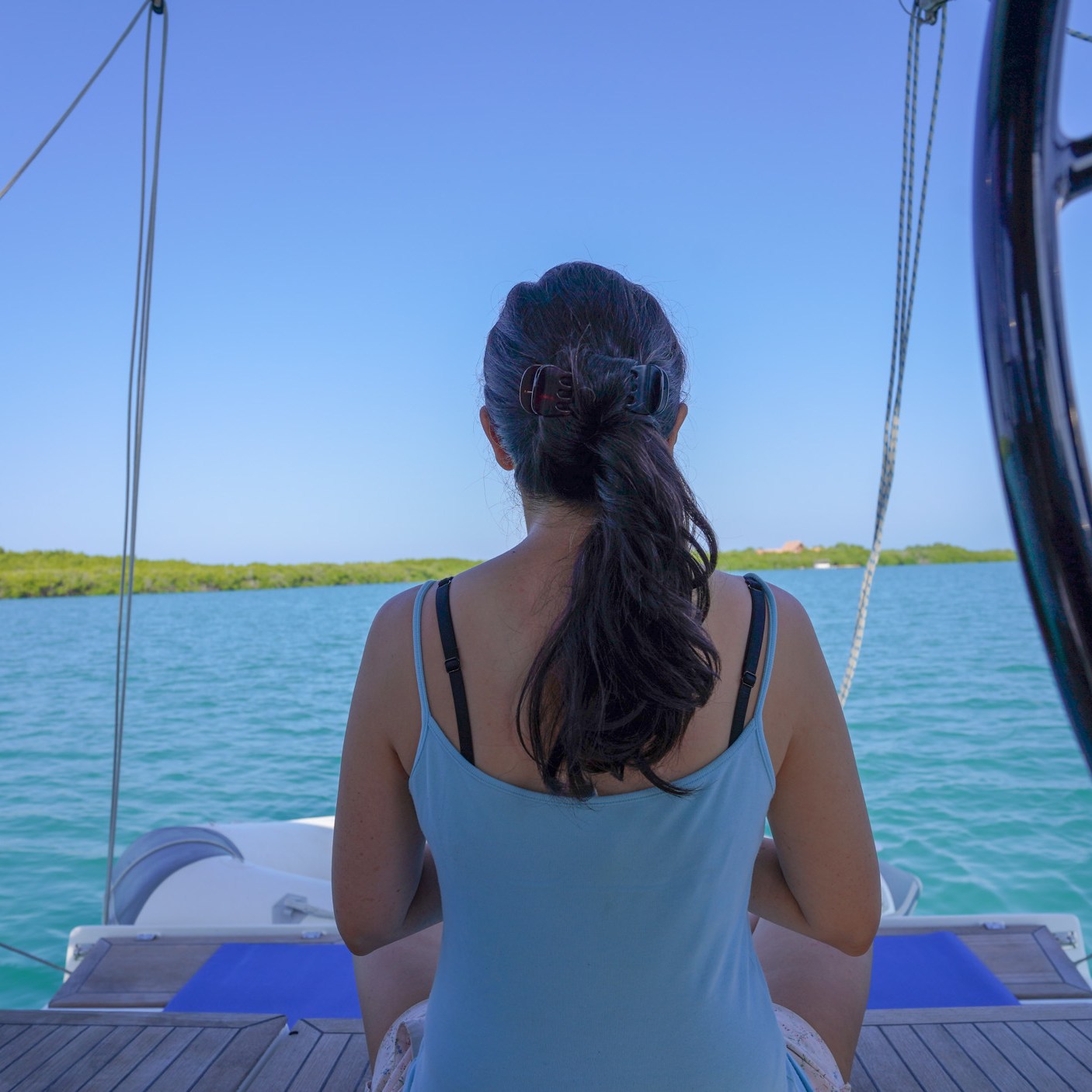 Islas del Rosario are more popular because they are closer to Cartagena, so there are boats on day tours that brings people to spend the day on the beach. Therefore, it could get busy on weekends and during the day. The Isla Grande has quite a large infrastructure of hotels, eco hotels and restaurants to welcome the visitors. They have suffer the pandemic as they were completely close for months and they are now restarting to open with the recommended protocols. In the afternoon, just after 2 o’clock boats start to making their way back to Cartagena, normally the wind gets stronger and it is going against the wind so better to arrive before the sunset. That worked perfect for us because after everyone was gone we could go to shore to explore and be back for apero.