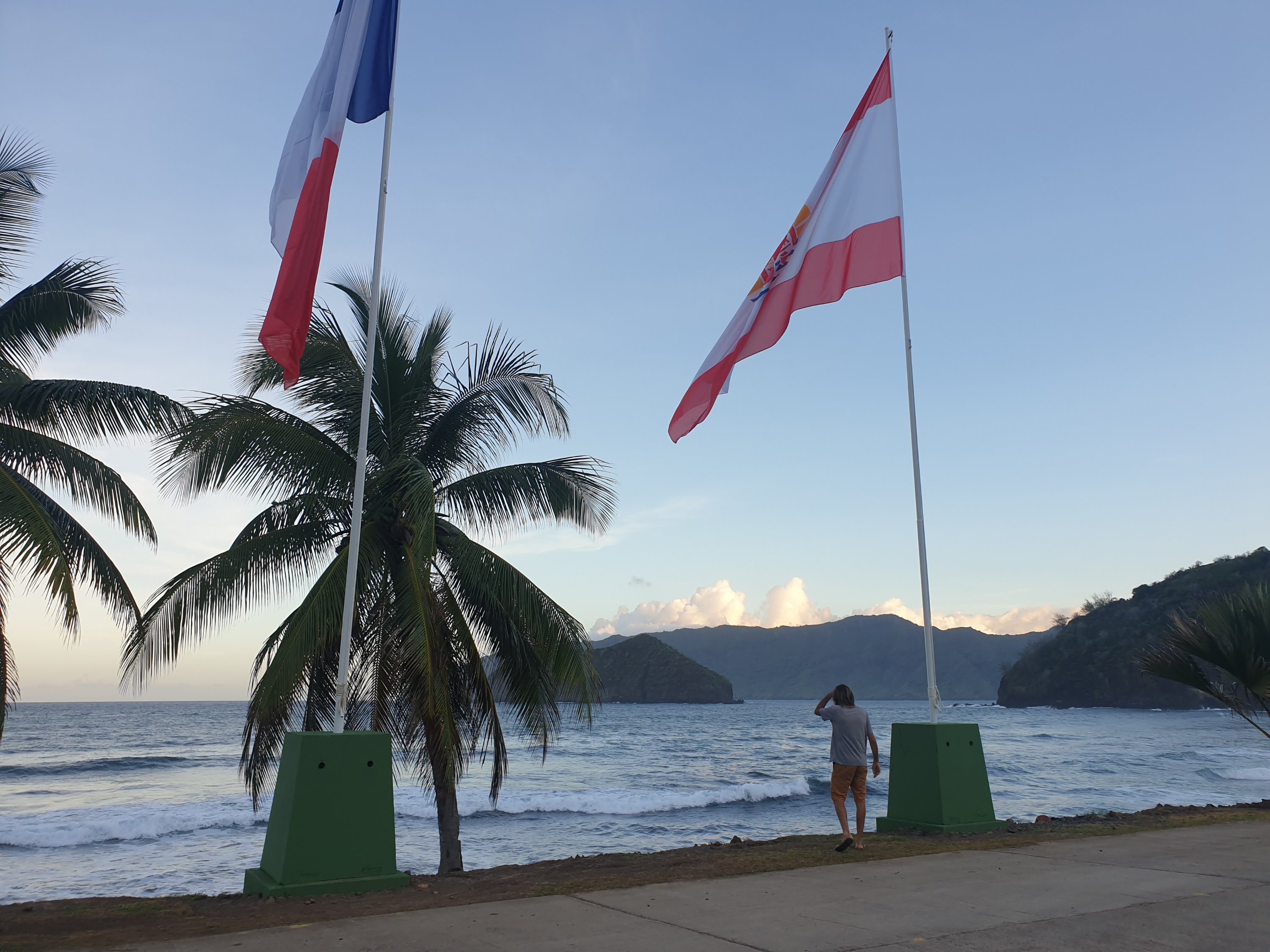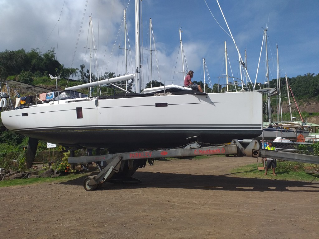 There is only one shipyard in Marquises and because of COVID lots of people had not been able to come to get their boats out, so places are limited. The yard is so full, it is a careful Tetris game to get boats in and out. Vincent, the shipyard manager told us, -recently there has been some movement-, apparently it was worst they had boat all the way to the entrance. On Tuesday, they had problems with the boat going into the water, so Tuesday became Wednesday and then moved to Thursday. I was worry because there is a lot to do before leaving the boat for a year or two and we were not going to have a lot of time on land. So we were preparing as much as possible with the boat in the rolling anchorage and a crazy hot weather, one of those days that the paradise everyone beleive we are enjoying feels much more like hell. I went to the airline offices to see if we could move our flights but it was impossible. Everything was fully booked because of the visit.