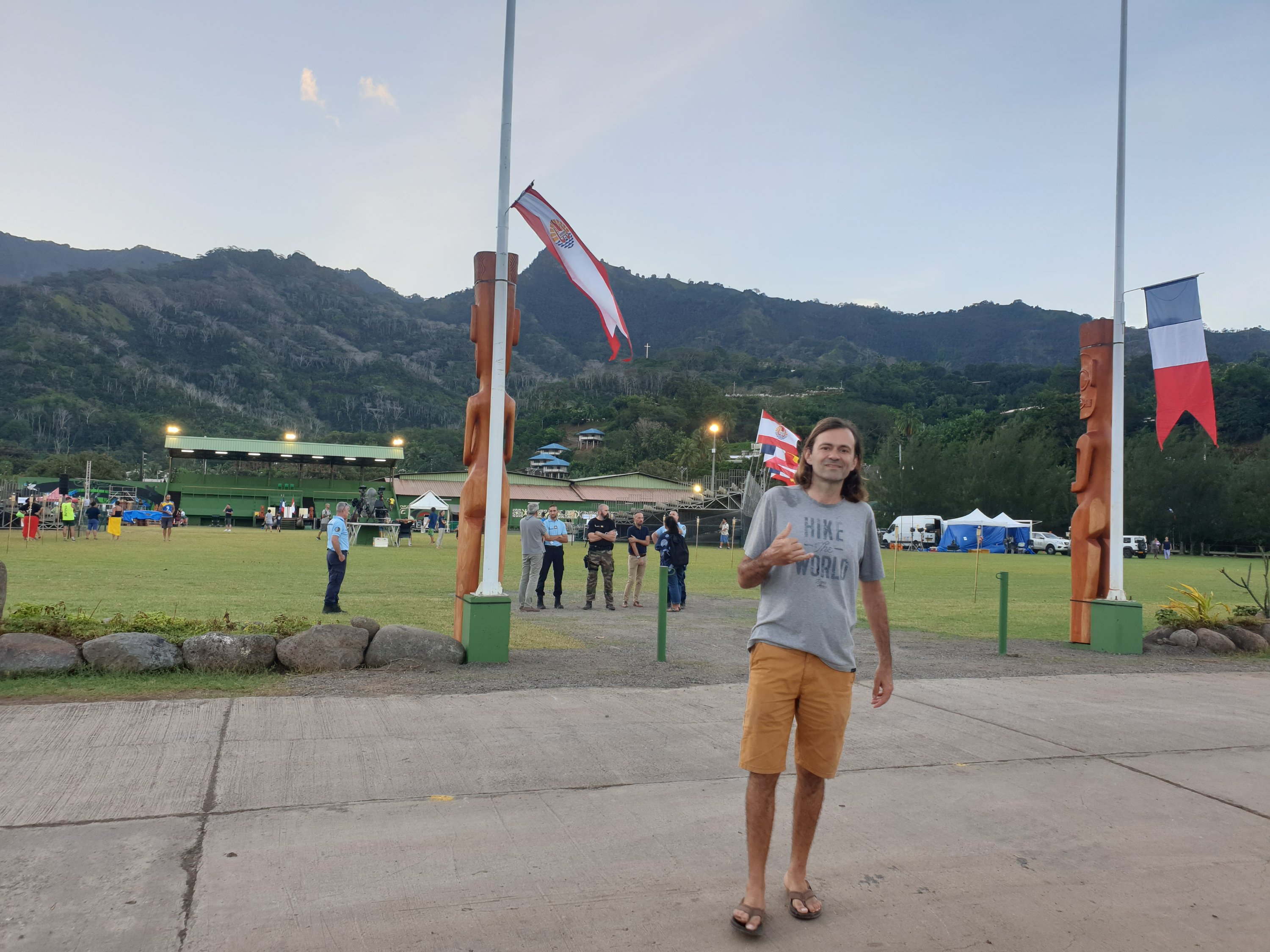 On Monday July 19, we arrived to Hiva Oa, where the only shipyard in the area is located. We were scheduled to get the boat out on Tuesday. So we actually had to come with a strong wind and the anchorage was rolling plenty. We thought we had plenty time to prepared and be ready for our flights on Saturday. To get to France from Marquises we had to go to Papeete first and then to Paris. The flights to leave Hiva Oa were all booked from July 25 to August 11. So our only option was to leave on Saturday 24th to Papeete and July 29th to France. We were told at this time of the year we didn’t need to worry about getting flights, but this year was special, Emmanuel Macron-french president was visiting French Polynesia for the first time ever, the same week we were going out of the Marquesas. His tour included Hiva Oa and Papeete, so his obviously everything around us was not usual.