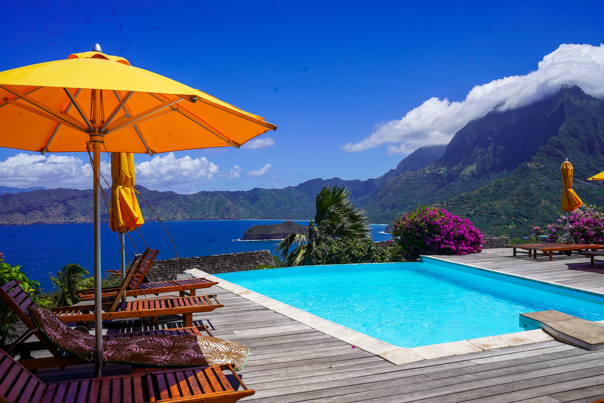 Seahorse shaped Hiva Oa is considered the garden of the Marquesas and is located between fertile mountains and raging oceans. The sharp cliffs that fall into the Pacific ocean show a rugged and beautiful coastline.