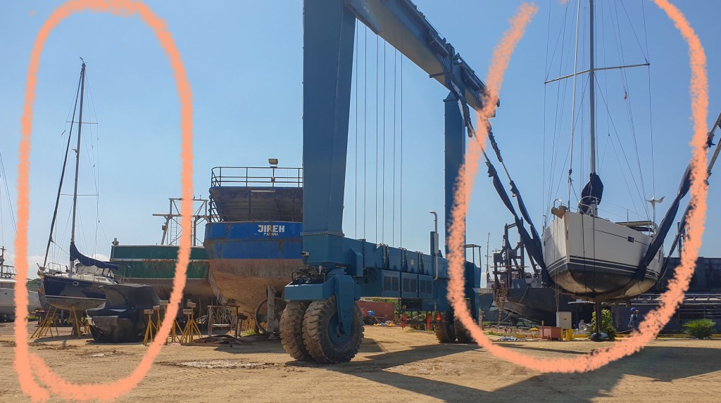 The shipyard manager was supposed to leave on holiday on Friday, and Happy Days is not the biggest boat but maybe one of the most difficult to manoeuvre for them, in terms of the tractor they used to move boats in and out the water. Our keel is 2.3m and that is the maximum they can take. Therefore, we preferred for the manager to be there when they put Happy Days in the water to operate the tractor. That really help things to get done a little faster. We had a new second-hand windlass in place, sail repaired, engine maintenance done, mast checked and few other items crossed off the list. Plus putting everything back in place sails, bimini, dogger and everything inside. Anyway, by Friday afternoon we were back in the water with Happy Days perfectly anchored and attached to a buoy on the back, all ready and secured.