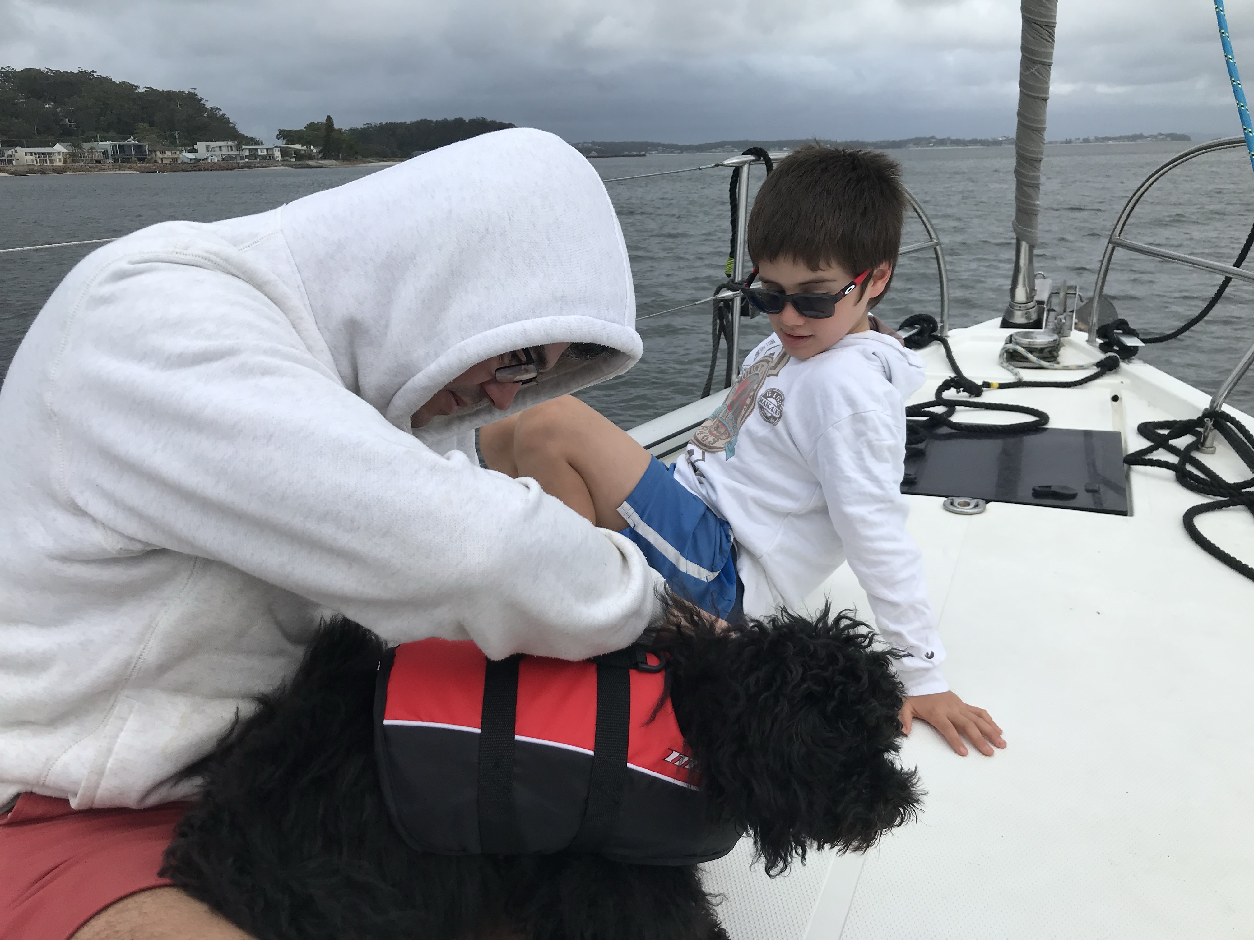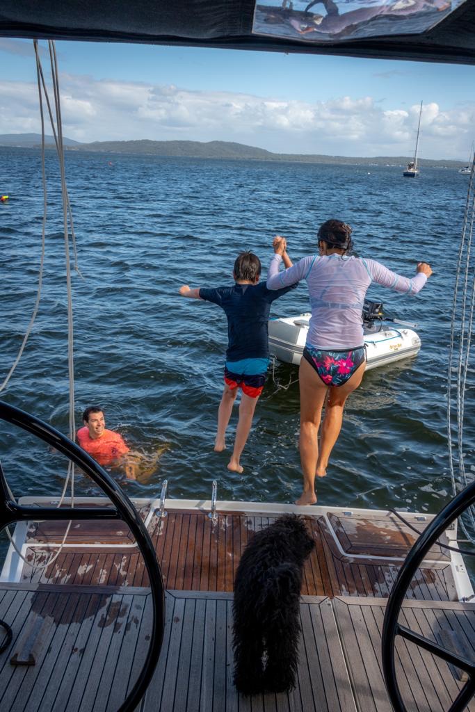 On December 4th, at about 7 am, we arrived in Port Stephens. We went directly to the marina, looking for an empty berth. Apparently, there are some that can be used on a temporary basis. However, as it was the weekend, they were all taken. We thought it would be easier to get everyone onboard by the dock. Hasty was still folded in the front locker, and we could save the inflation of the dinghy by putting it on the water and hoping the engine would run. Sometimes, after so many days, the little engine gets temperamental. Therefore, we went and tied to a courtesy mooring in front of the beach. As we had been sailing all night, we went for a nap. There was still time before everyone arrived.