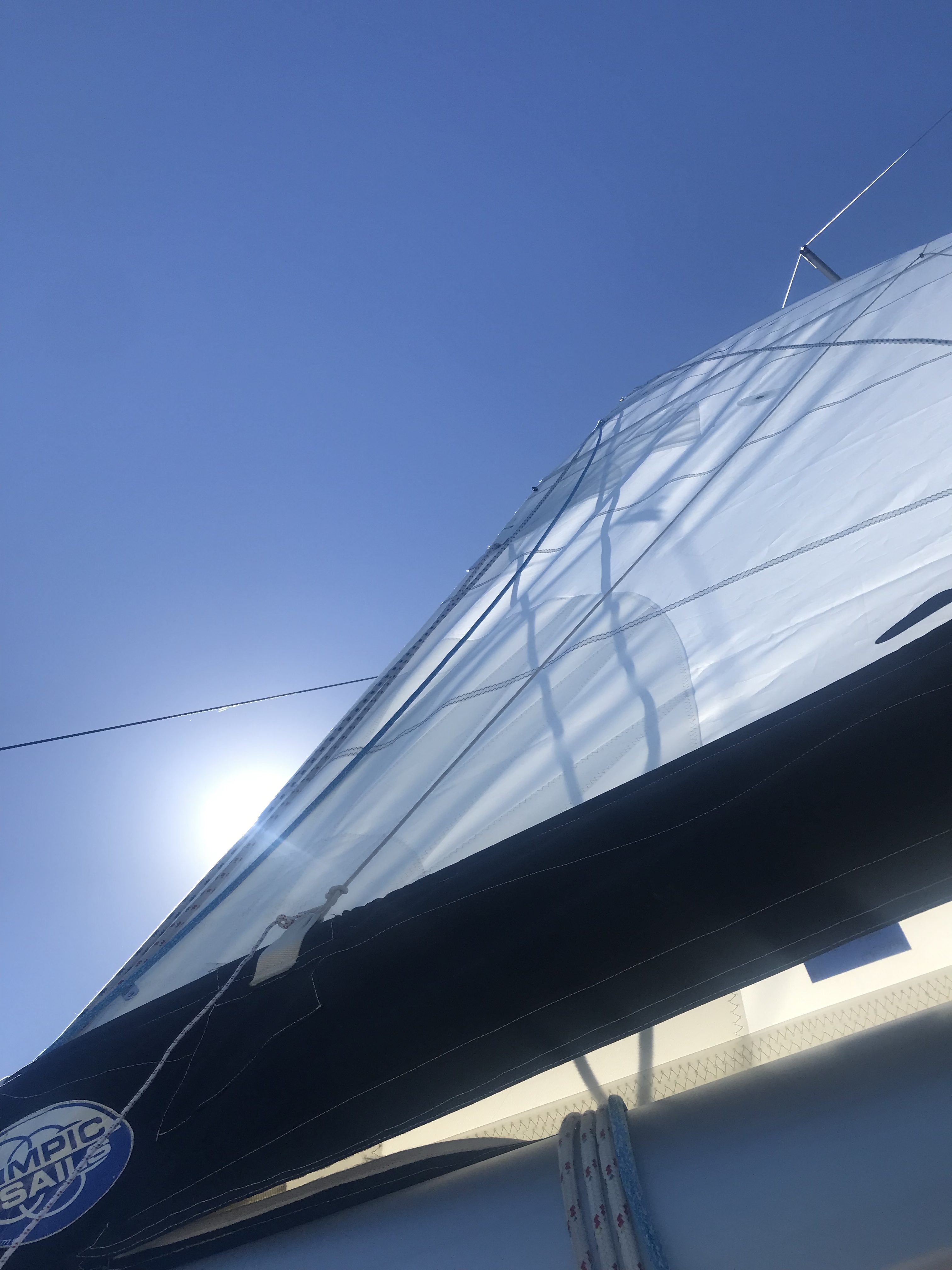 While we waited, we said goodbye to our mainsail and thanked it for guiding us across the oceans. Remember when we were in Panama, planning our journey to French Polynesia? We knew we would be visiting remote places like Gambier, where finding parts would be so difficult, so we decided to purchase a new mainsail. And we had had it all this way with us. Now, it was time to install it. I’m grateful and relieved that we didn’t have to do this installation while sailing or in a remote location. The sail is quite large and required many screws and bolts. Cedric spent a full day and a half working on it, and I helped too. It is not a one-man job, lots of steps to follow. At sea, if it would have come to that, we could have done it, but it would have taken us so much more effort and with a moving boat, I can’t imagine.